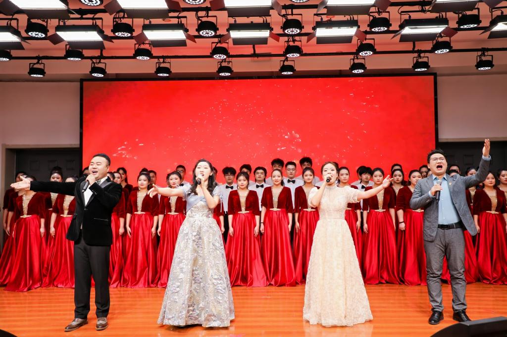 星光熠熠,其华灼灼;弦歌舞雲,活力四溢。在悠扬的旋律中,庆典大会文艺汇演拉开序幕。从民族舞《春潮花海》到情景剧《清庭问月》,从现代舞《lalaland》到诗朗诵《我和创新的散文诗》,师生代表们通过舞蹈、音乐、朗诵、情景剧、合唱等多种形式深情表达了对公司20华诞的祝福,展示了蓬勃向上、自信昂扬、奋发进取的精神风貌。